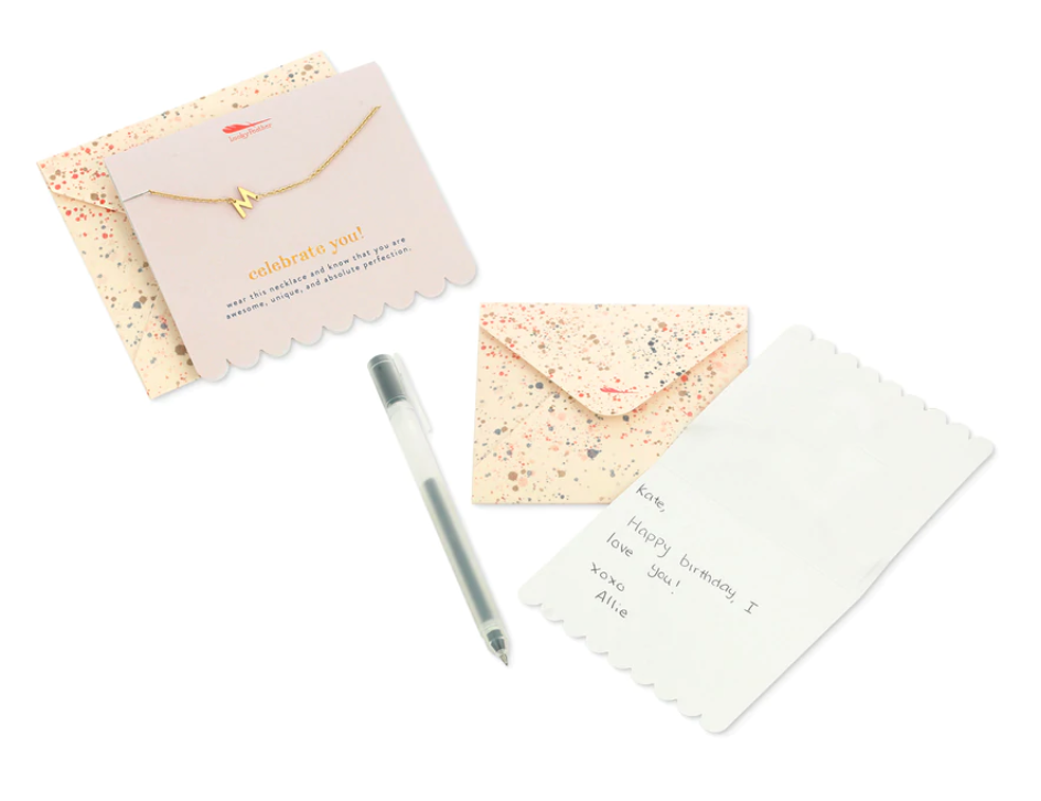 Necklaces are 14k gold-dipped and zinc-free. Each necklace comes on a blank card with room inside for a note with a self-adhesive mini envelope. A 2-in-1 deal, ready for gifting!
