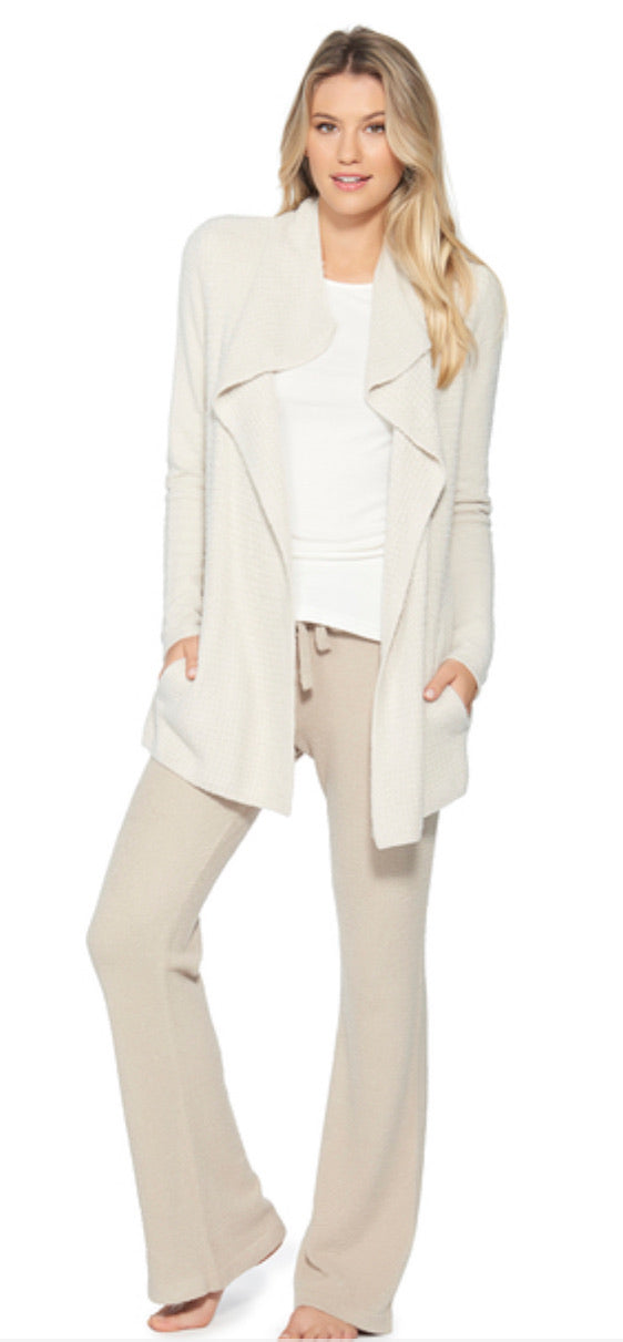 COZY CHIC LITE. Take notice of our new, lightweight, waffle knit cardi featuring a relaxed draped collar and two cozy inset pockets. Perfect for all day lounging and on the go.