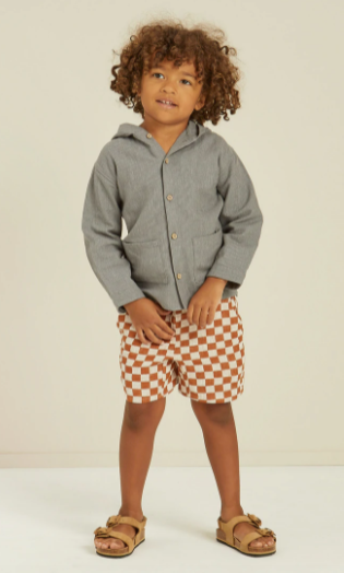 These woven shorts feature side pockets, back pocket, elastic waistband with adjustable rope drawstring.