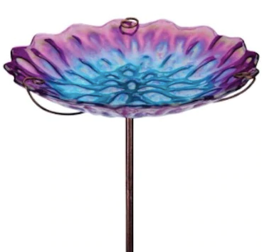 This beautifully crafted art glass bowl birdbath/feeder stake stands proud with a stable 3-pronged base providing the perfect area for feathered friends to visit! Offering the choice to be used as a birdbath or bird feeder.