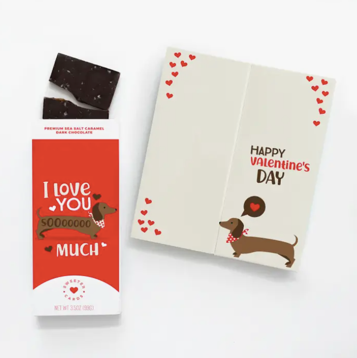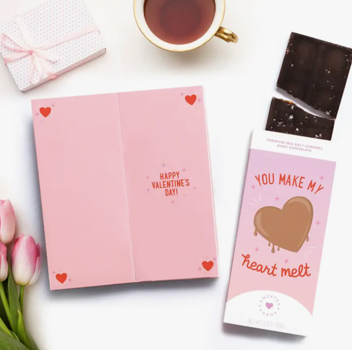 Sweeter Cards is the first-ever greeting card and gourmet chocolate bar ALL IN ONE, featured in The New York Times, Good Housekeeping, Food Network and more. Our sea salt caramel dark chocolate is absolutely delicious, and we have 40+ designs for all occasions!