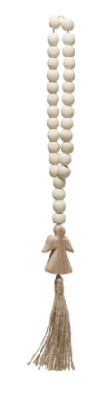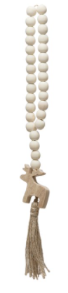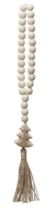 14-3/4"L Paulownia Wood Beads w/ Pendant & Jute Tassel. Beautiful to hang on a wine bottle, gift, or use as decor around a vase or a knob.