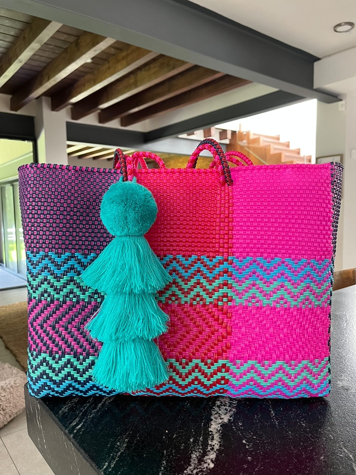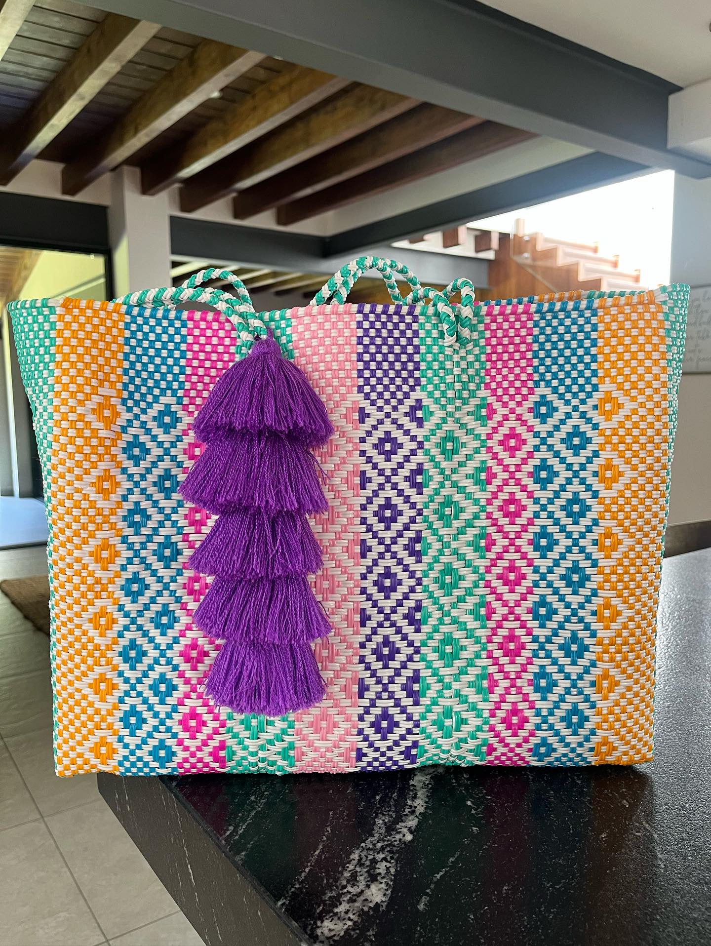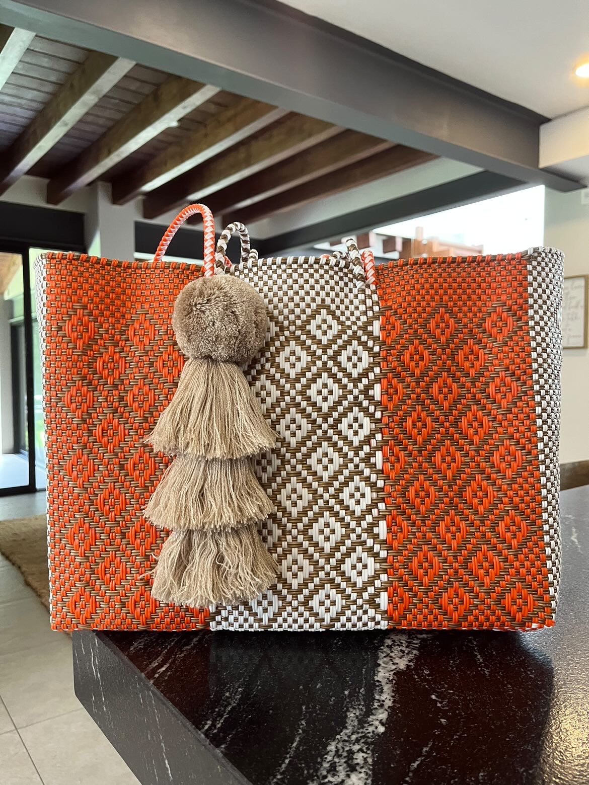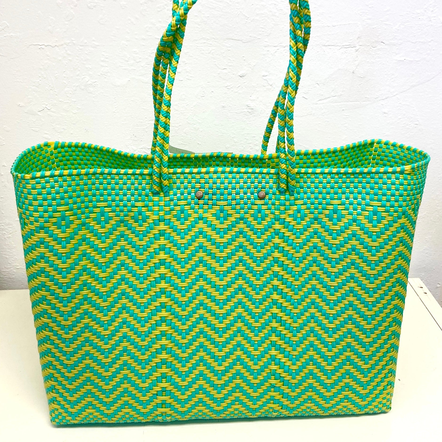 • large handles woven in to the design of the bag