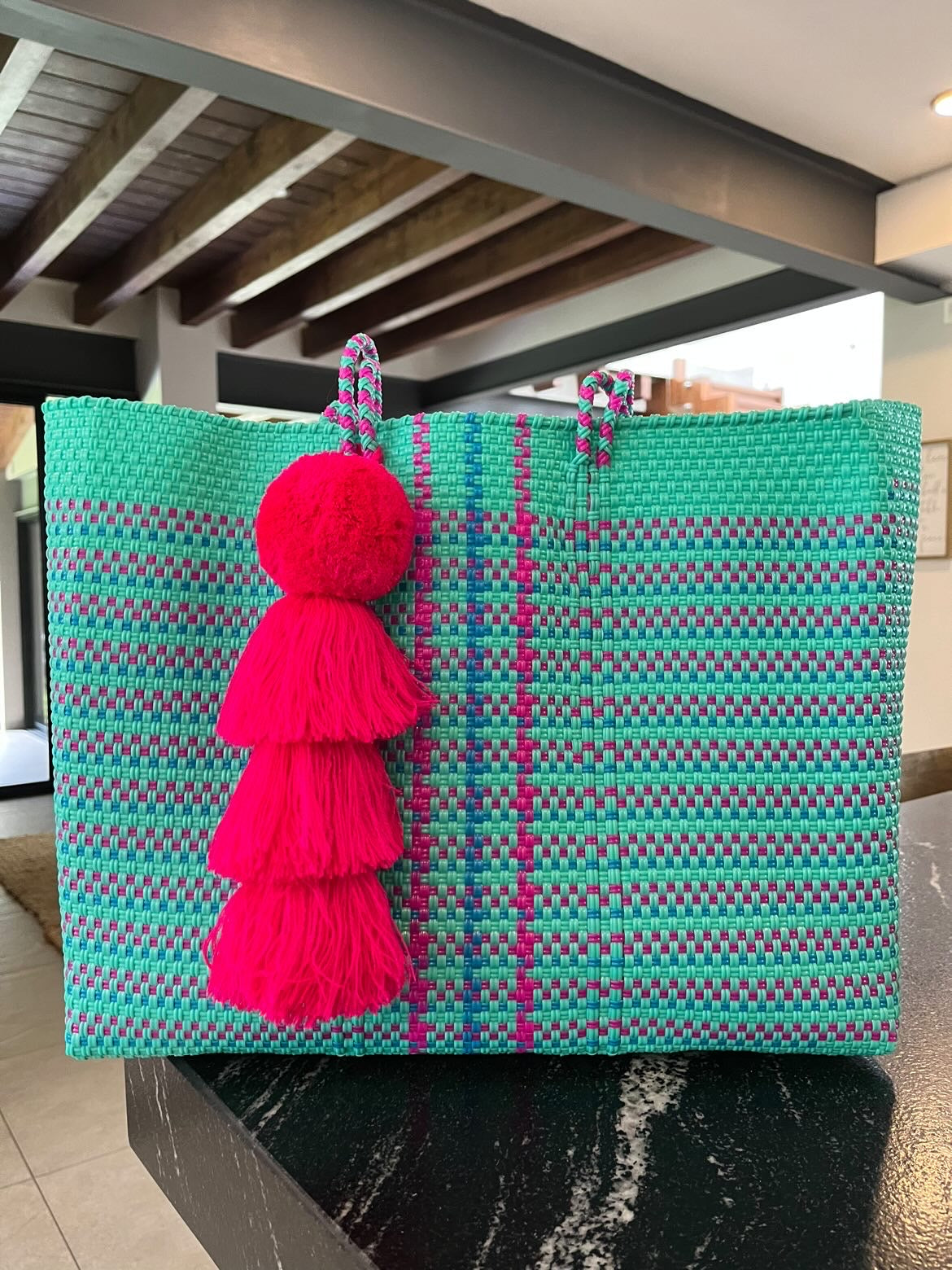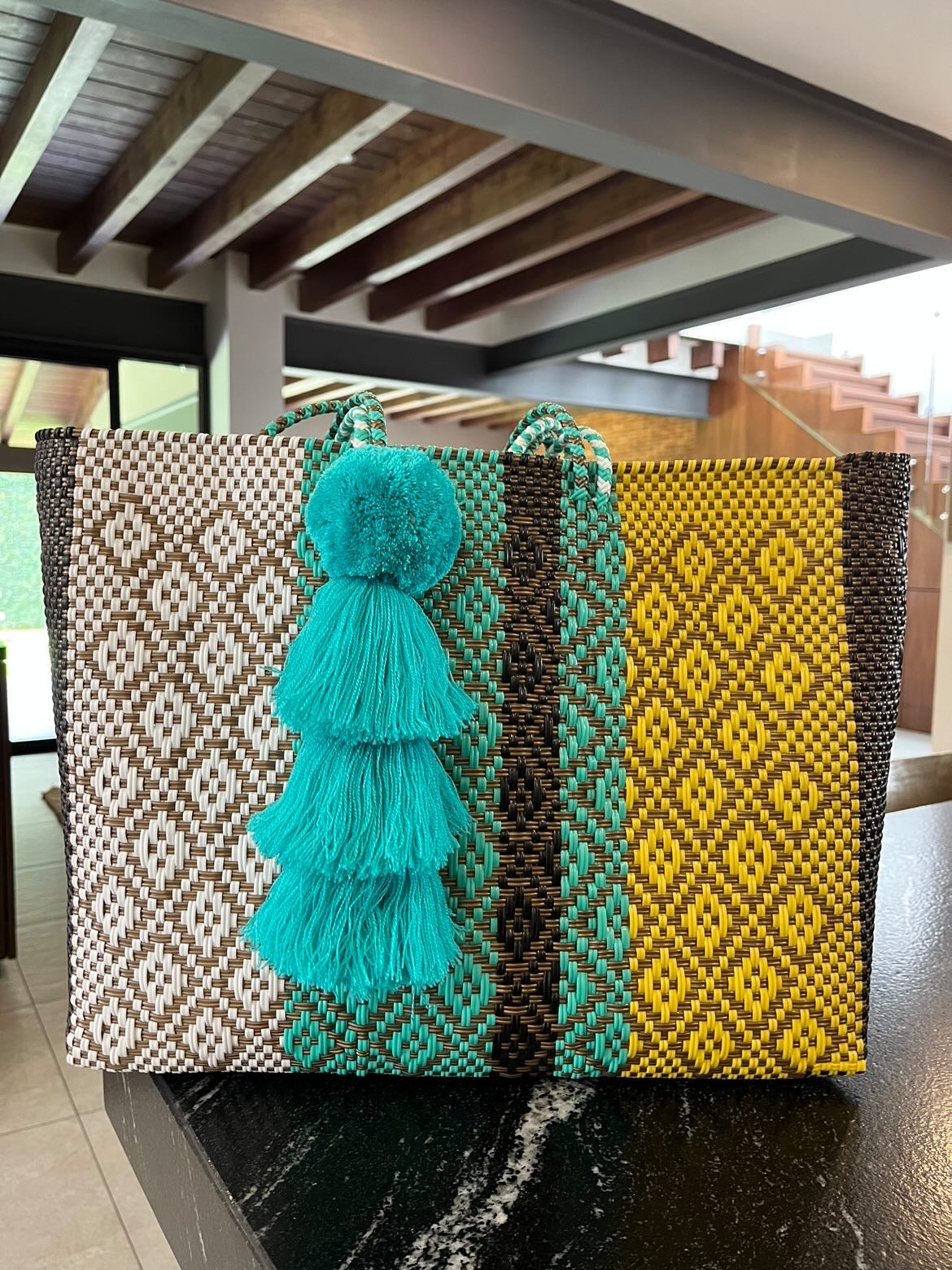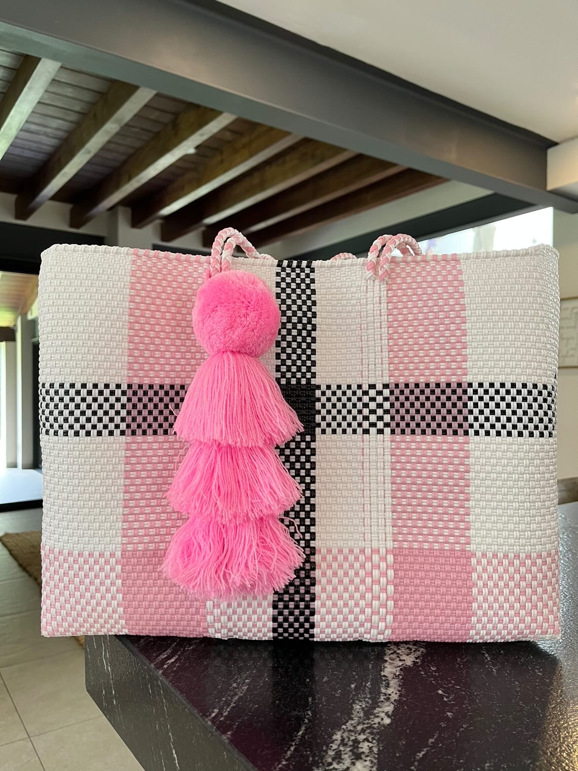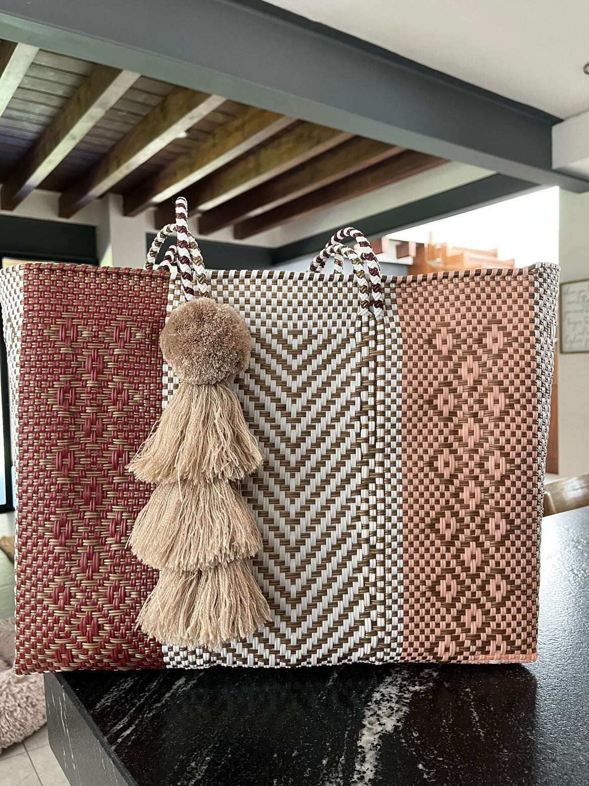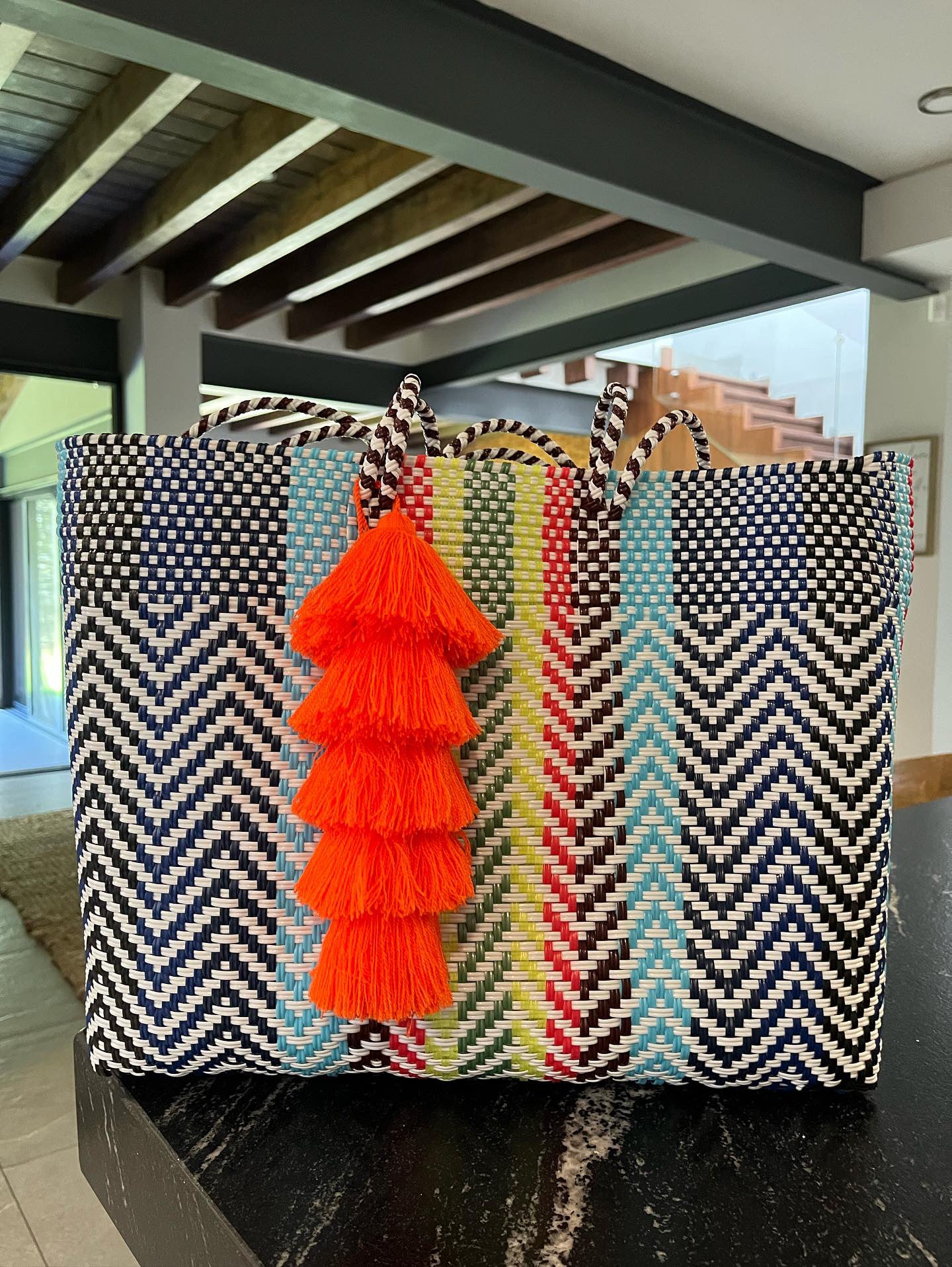 • large handles woven in to the design of the bag