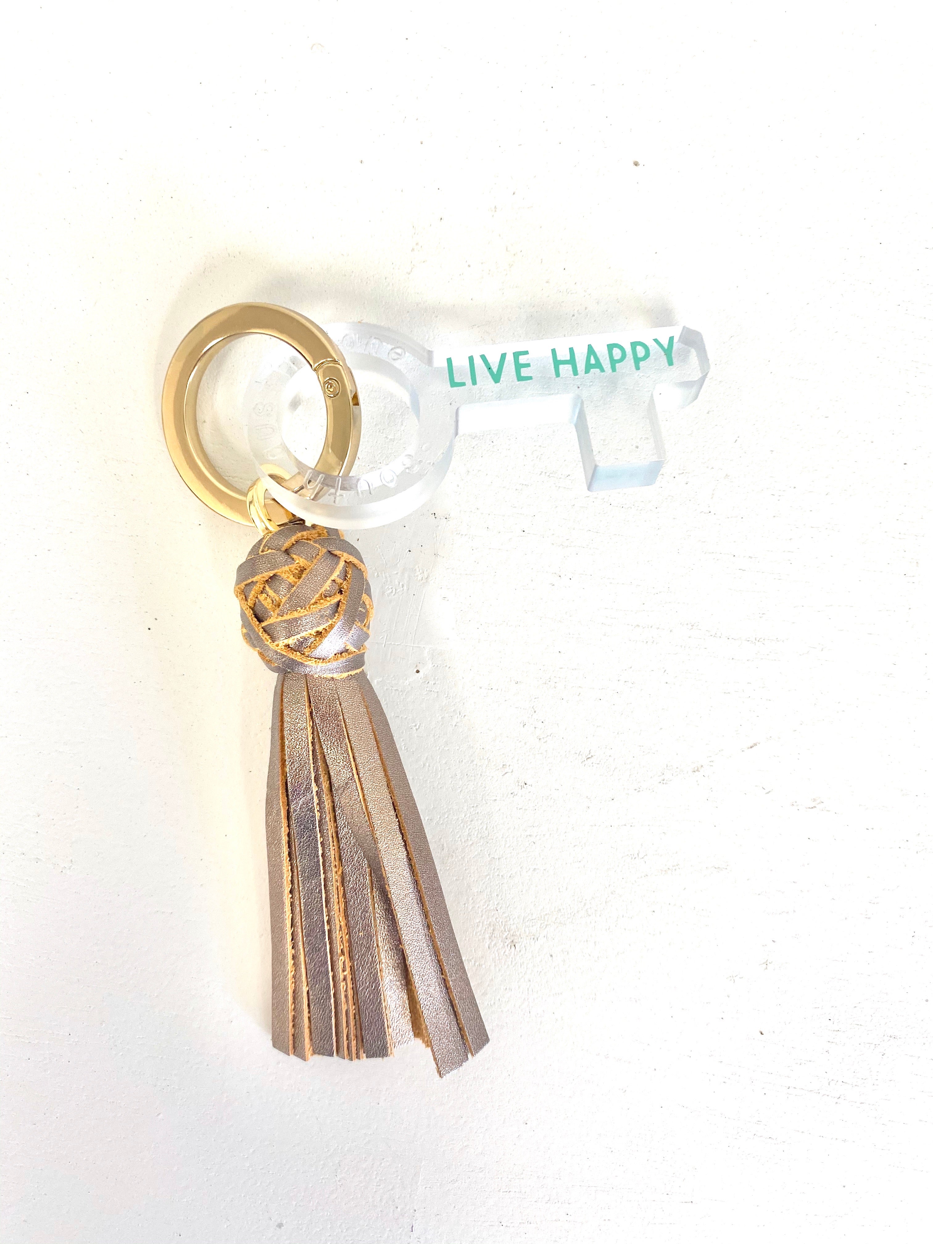 Keep your hands free from all the cooties lurking about these days with this clean key and tassel key chain! The clean key can be used for opening doors as well as all public pin pads (ATM, gas station, etc...) and is easily clipped on to your keys or purse so you always have it with you. Small tassel is 4" in length and large tassel is 8" in length