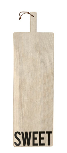Large classic mango wood plank board provides a clean presentation of your favorite desserts and appetizers. This reversible board is printed with "SALTY" on one side and "SWEET" on the other so there is always something for everyone!