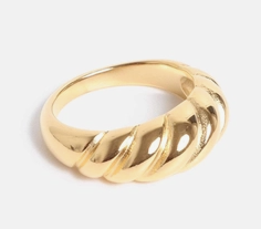 Wrap up your dream accessories wardrobe with our rita ring. Accented with a chic spiral croissant shape, this stainless steel style is a statement worth making. Non-tarnish and hypoallergenic, this piece will maintain its luster all day long — and no need to take it off while washing your hands! Named one of celebrity stylist rachel zoe’s favorite rings in the mc collection, this piece is the perfect mix of vintage and on trend all wrapped into one. 3/8" width Available in sizes 6, 7, 8 Material Hypoallergenic. Water resistant. Rust-resistant. Sustainable. Gold: 14k-plated stainless steel. Silver: polished stainless steel. Care All Marrin Costello collection jewelry is crafted of a hypoallergenic + water resistant + sustainable stainless steel base. When not worn, please store in a protected place and use a cleaning cloth to spot treat as needed.