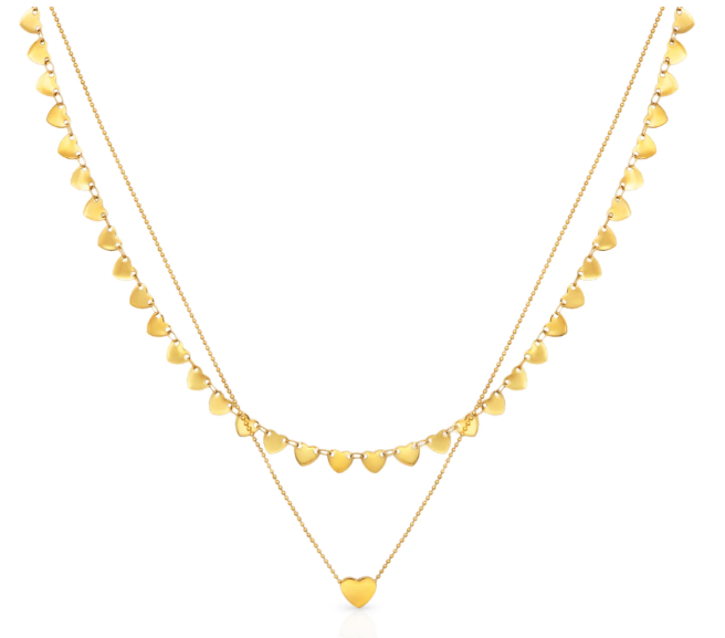 • This pretty classic stainless steel gold double layered necklace features a beautiful gold delicate heart charm.