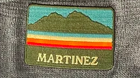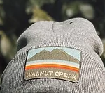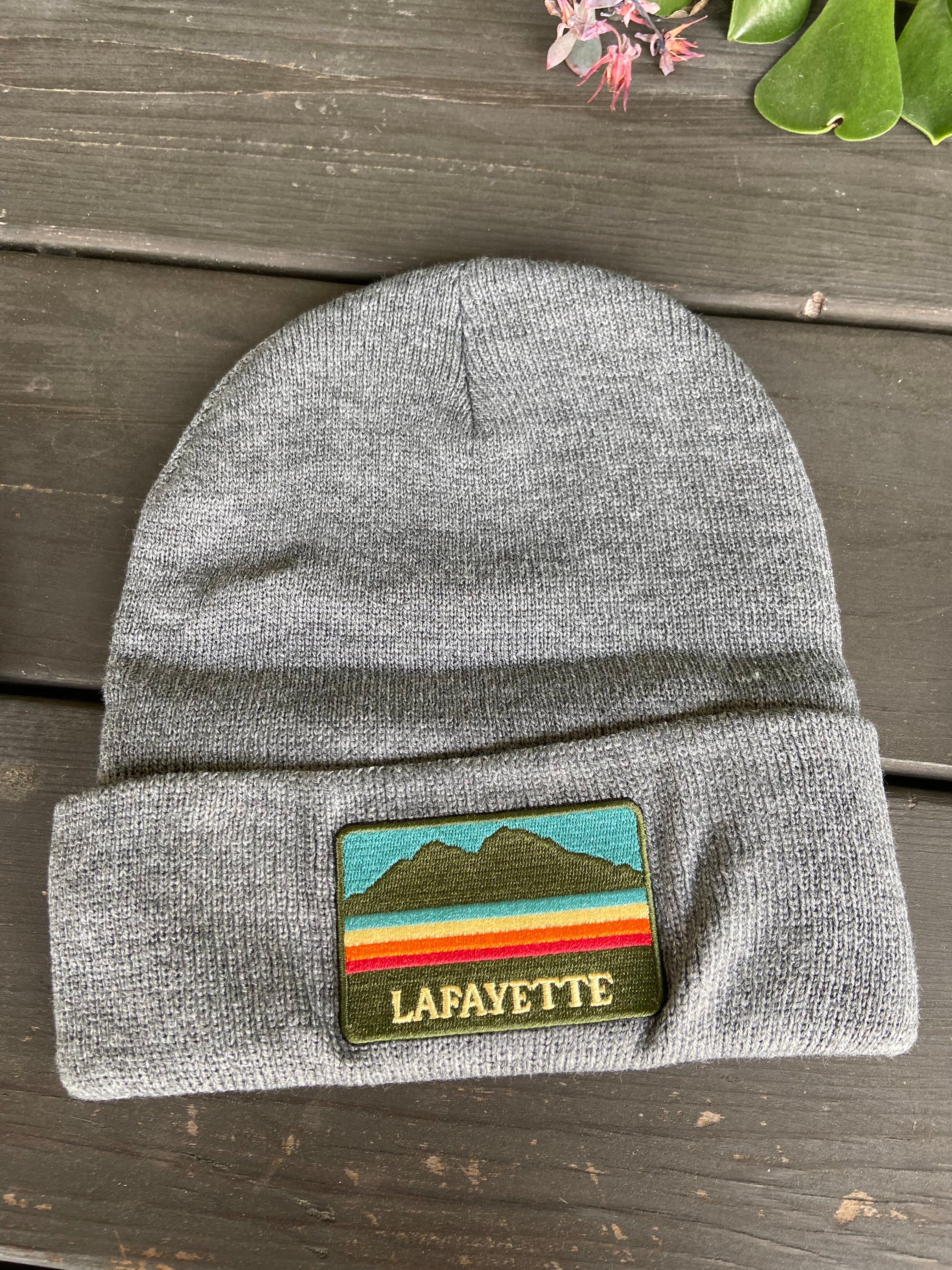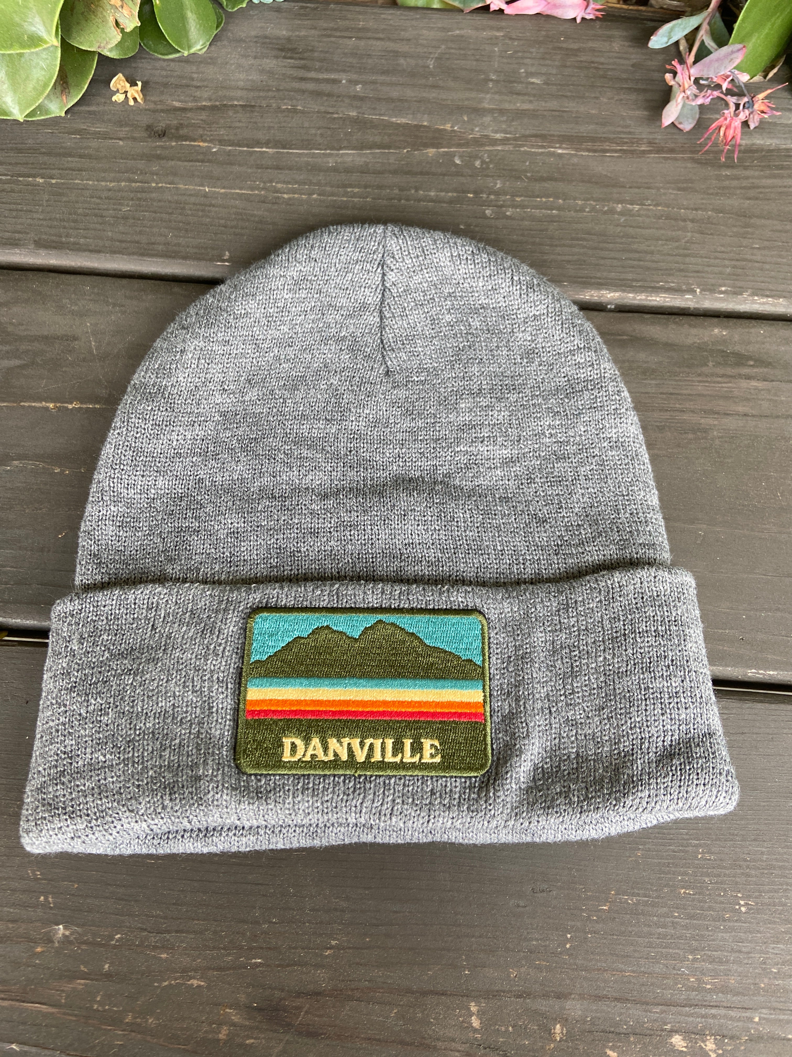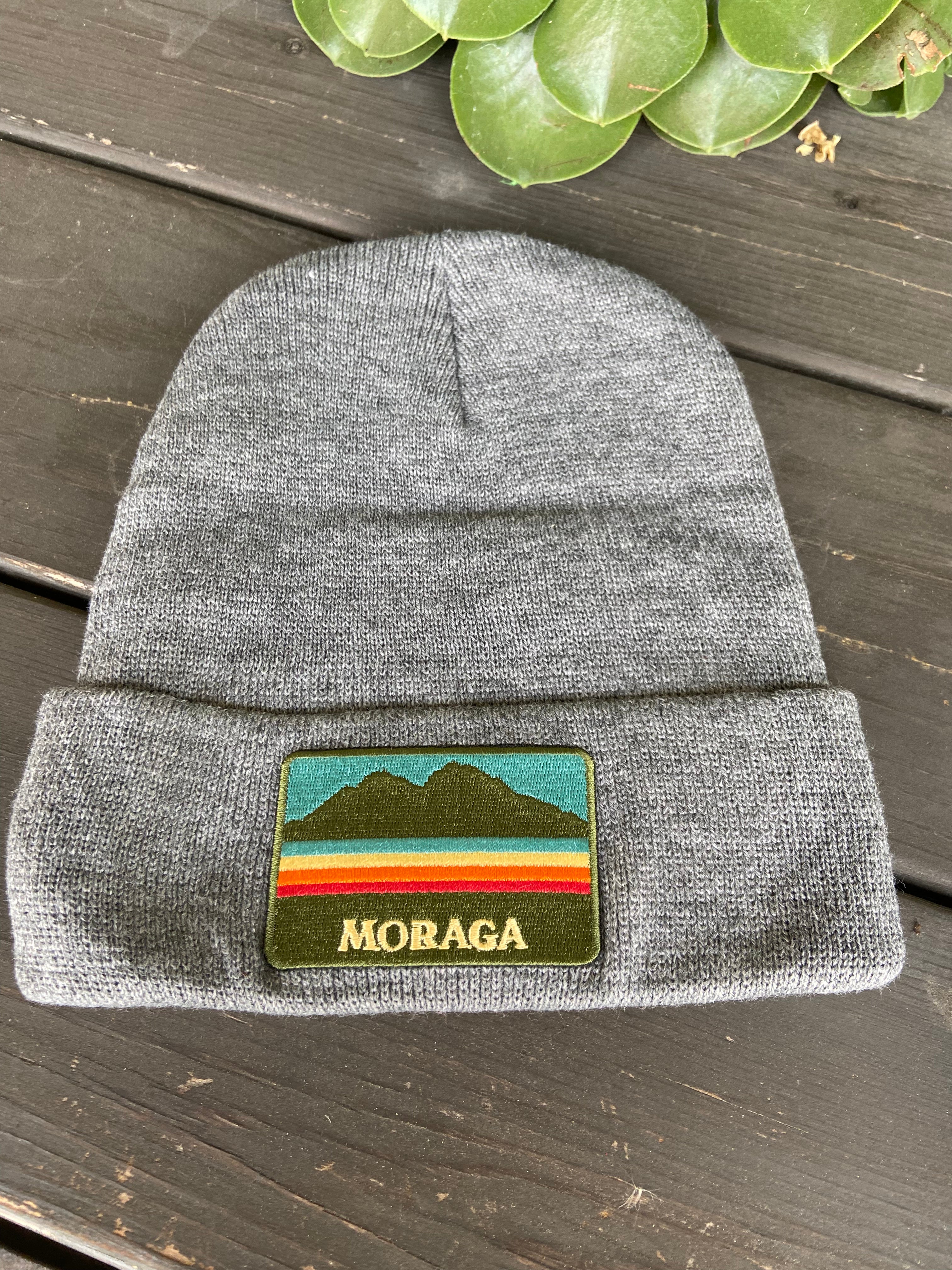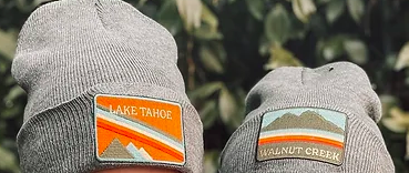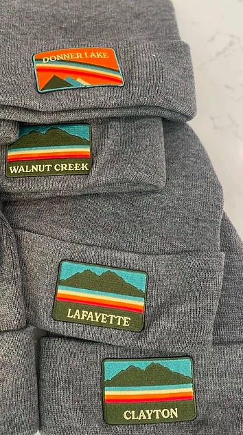 Charcoal beanies with custom city patches.