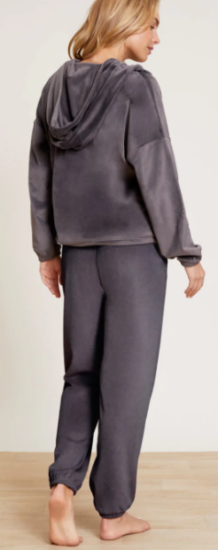 Our new LuxeChic fabric is ultra-soft, resembling a plush velvet, and has the perfect touch of stretch for extra comfort. This hoodie features a cross over front neckline, roomy hood and dropped shoulder with long sleeves and elasticated cuffs. Encased drawcord at waist for added style. Complete the look with our coordinating LuxeChic Jogger.