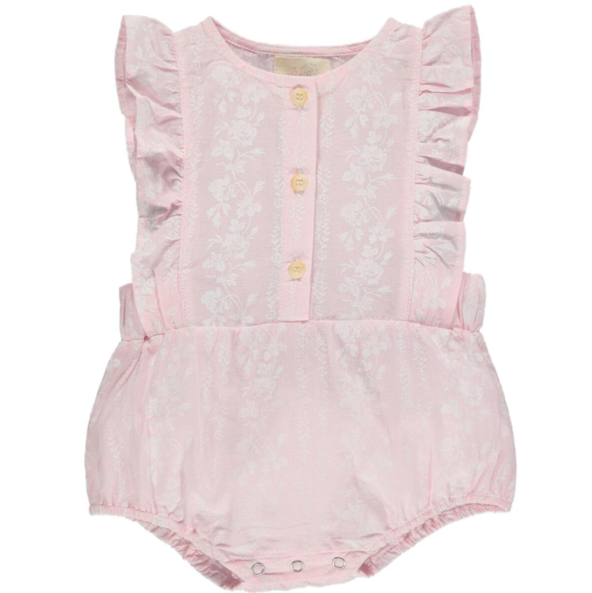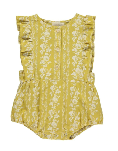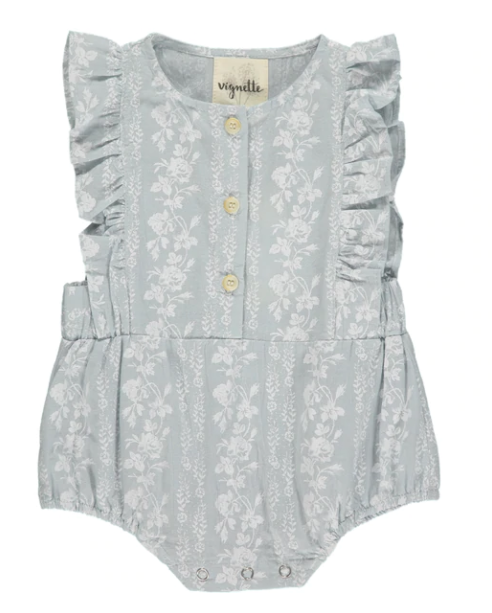 Our new Megan Bubble is so lovely for baby in super soft double gauze fabric with ruffle sleeves, accent buttons, and snaps for easy changes.